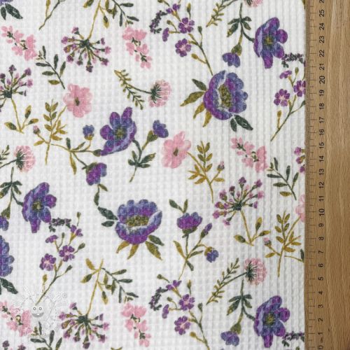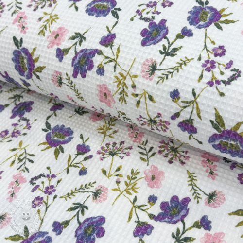 Bavlna s vaflovou väzbou Flowers white digital print