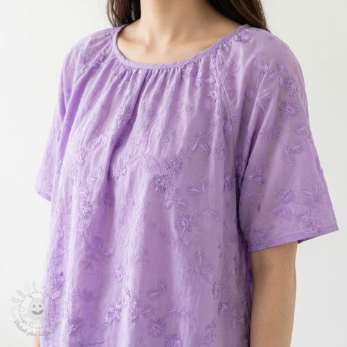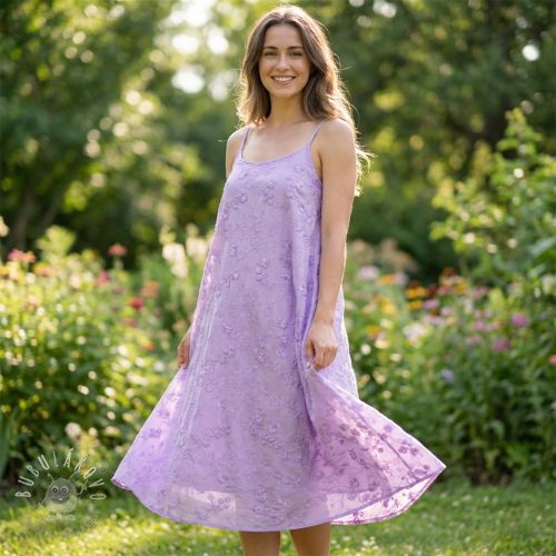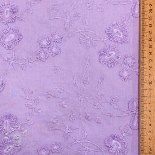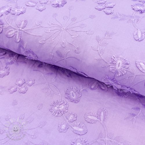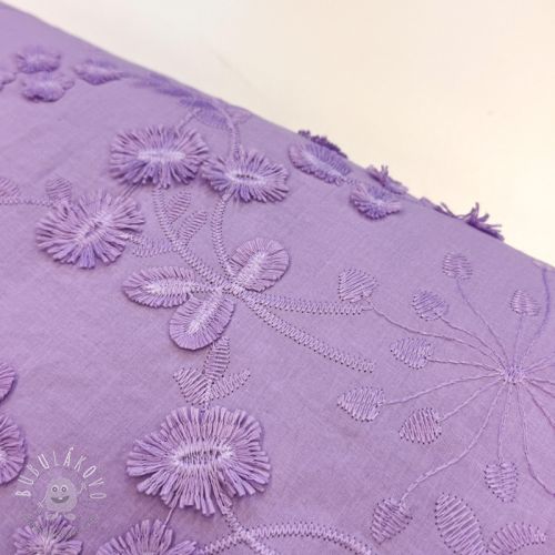Bavlnená látka EMBROIDERY Catchy leaves purple
