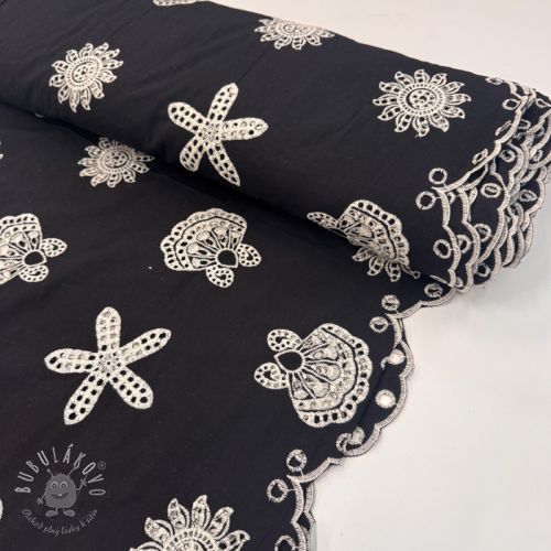 Bavlnená látka EMBROIDERY Sea ornaments black