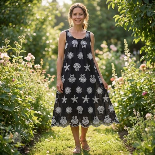 Bavlnená látka EMBROIDERY Sea ornaments black