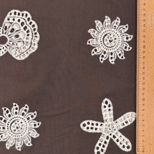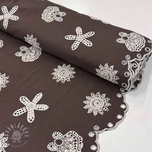 Bavlnená látka EMBROIDERY Sea ornaments brown