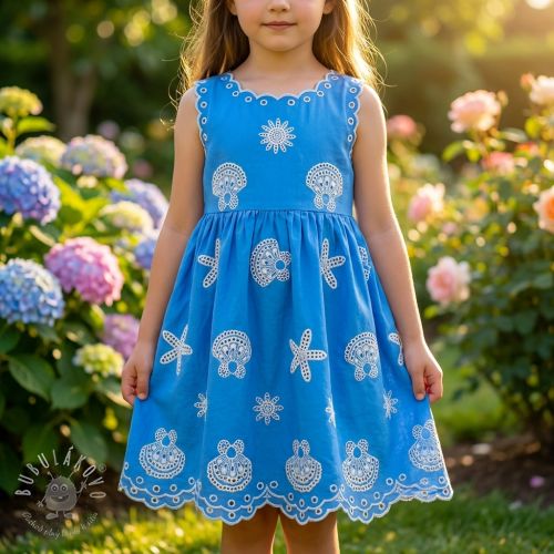 Bavlnená látka EMBROIDERY Sea ornaments light blue