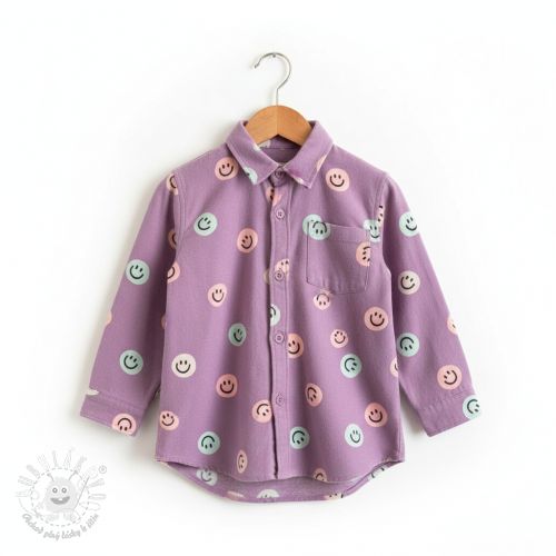 Bavlnená látka FLANNEL Happy faces off white lilac