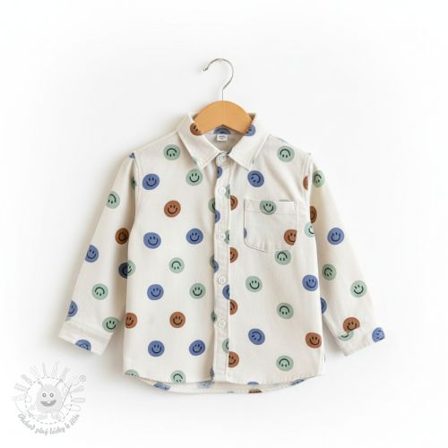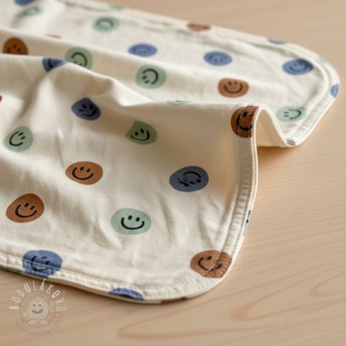 Bavlnená látka FLANNEL Happy faces off white green