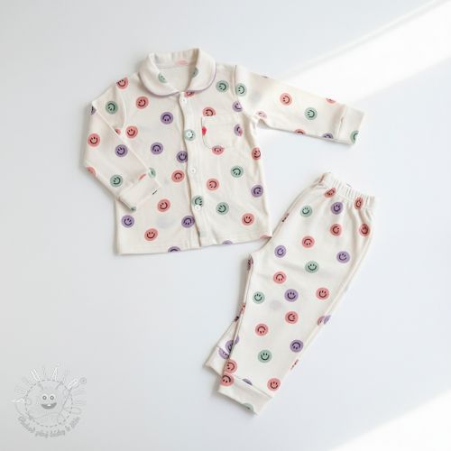 Bavlnená látka FLANNEL Happy faces off white lilac