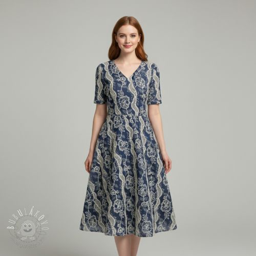 Bavlnená látka JEANS EMBROIDERY Flora design A