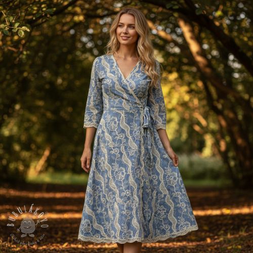 Bavlnená látka JEANS EMBROIDERY Flora design B