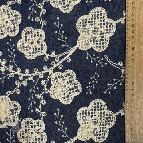 Bavlnená látka JEANS EMBROIDERY Flora design E