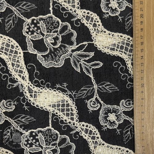 Bavlnená látka JEANS EMBROIDERY Flora design D