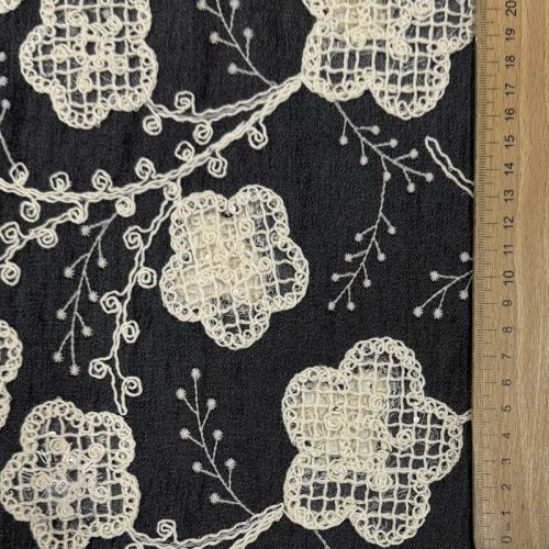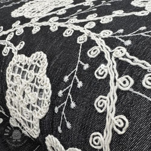 Bavlnená látka JEANS EMBROIDERY Flora design D