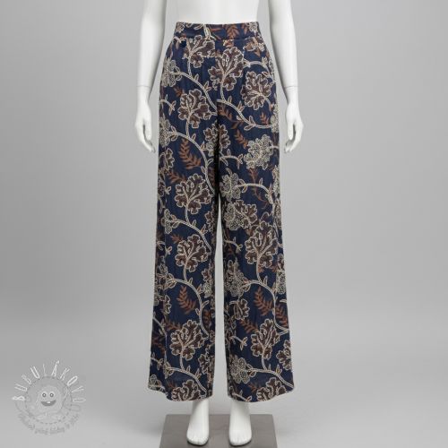 Bavlnená látka JEANS Embroidery leaves dark blue
