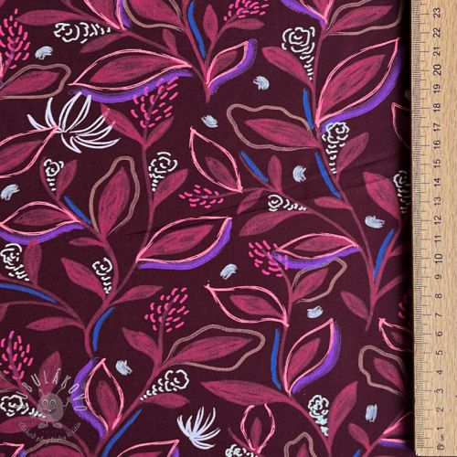 Bavlnená látka Leaves bordeaux digital print