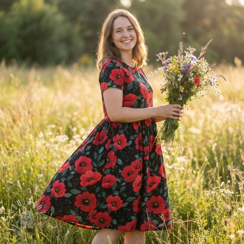 Bavlnená látka Poppy black digital print