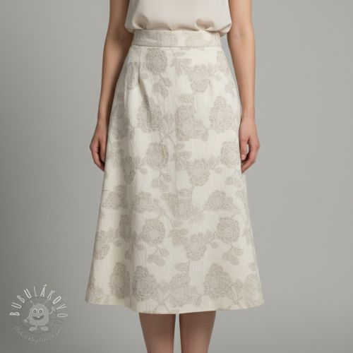 Bavlnená látka s ľanom JACQUARD Peony flowers