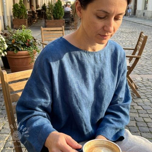 Bavlnená látka s ľanom PREMIUM steel blue