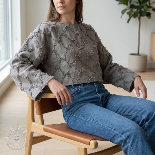 Bavlnená látka s ľanom Vintage Fringe Diamonds grey