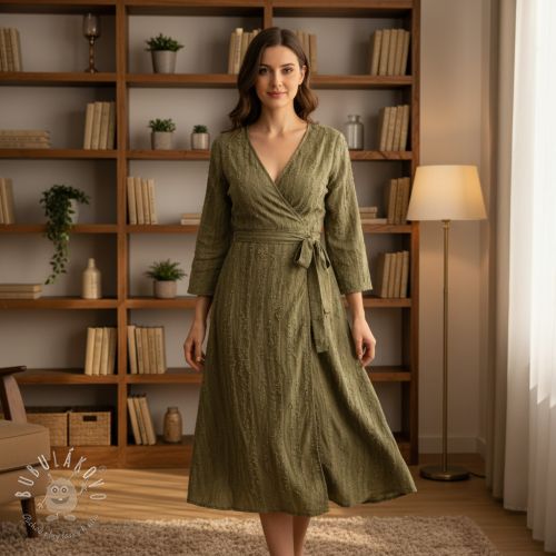 Bavlnená látka s ľanom Vintage Fringe Diamonds army