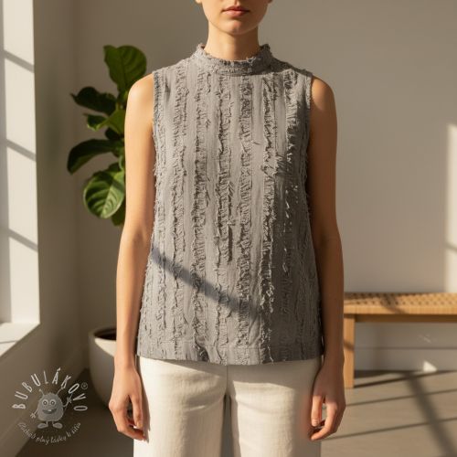 Bavlnená látka s ľanom Vintage Fringe Stripe grey
