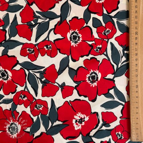 Bavlnená látka SATIN Flower Kala offwhite