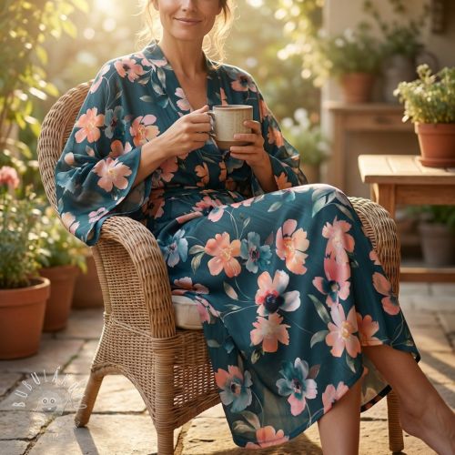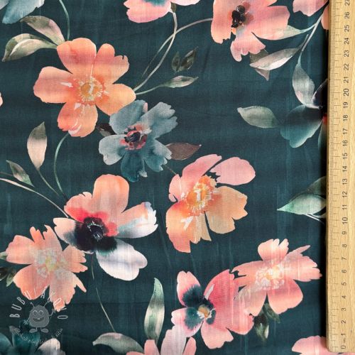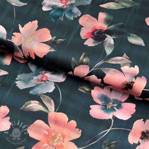 Bavlnená látka SATIN Penny flower petrol digital print
