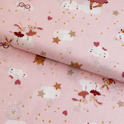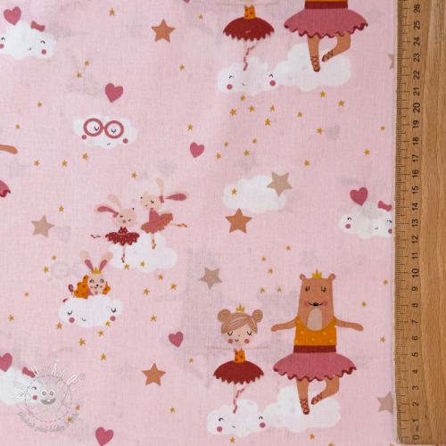 Bavlnená látka Sweet ballerina animals powder ORGANIC