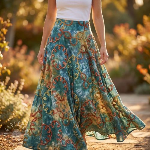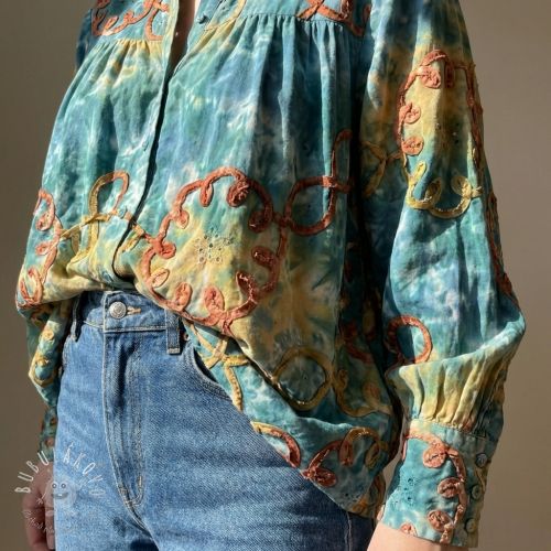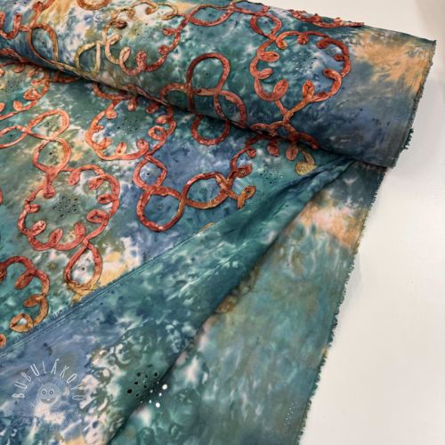 Bavlnená látka TIE DYE EMBROIDERY Elise tape design E