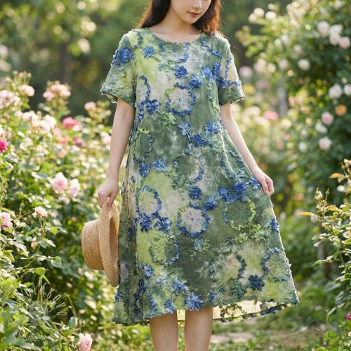 Bavlnená látka TIE DYE EMBROIDERY Eva tape design F