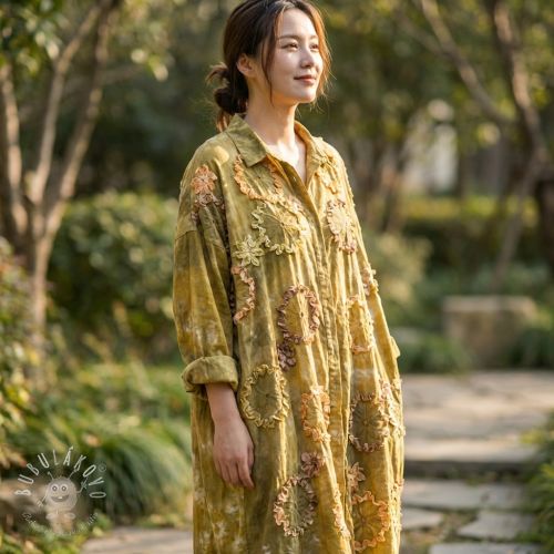 Bavlnená látka TIE DYE EMBROIDERY Eva tape design A