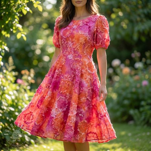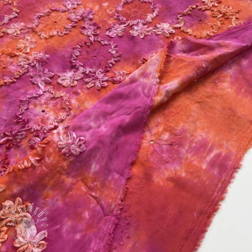 Bavlnená látka TIE DYE EMBROIDERY Eva tape design F