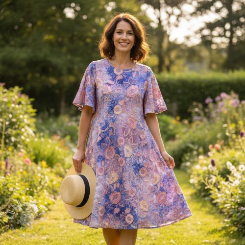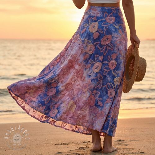 Bavlnená látka TIE DYE EMBROIDERY Flora design D