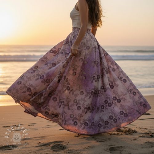 Bavlnená látka TIE DYE EMBROIDERY Poppy design O