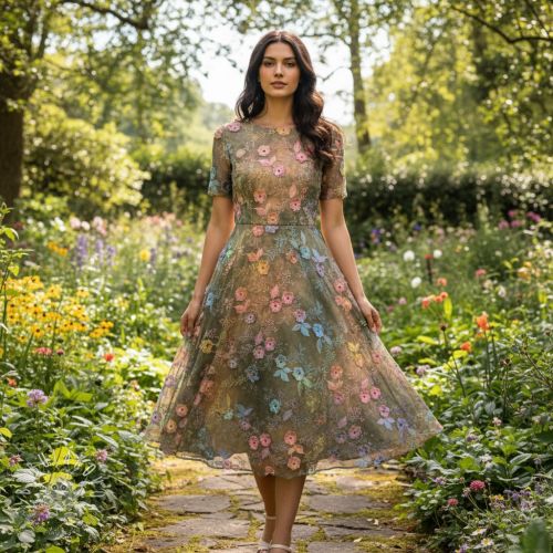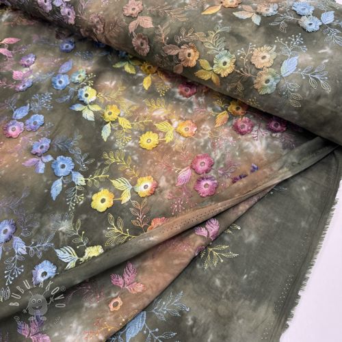 Bavlnená látka TIE DYE EMBROIDERY Poppy design I