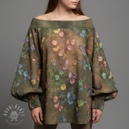 Bavlnená látka TIE DYE EMBROIDERY Poppy design J