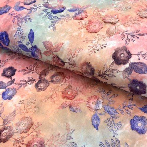 Bavlnená látka TIE DYE EMBROIDERY Poppy design Q