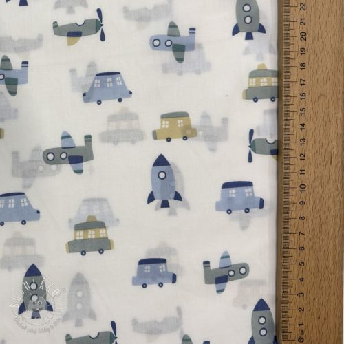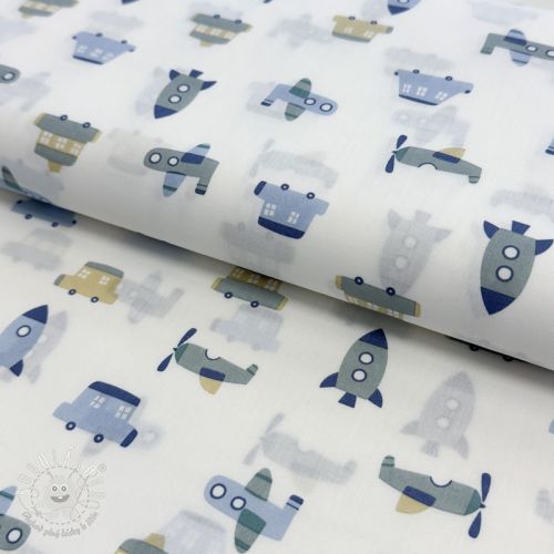 Bavlnená látka Vehicles white
