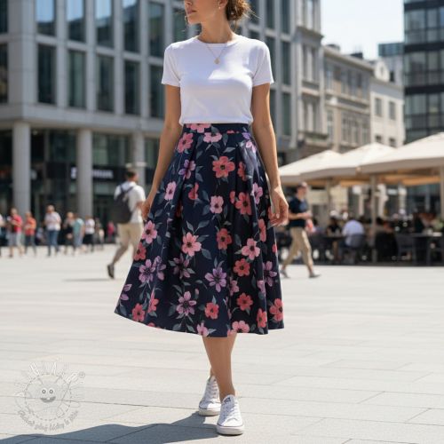Bavlnená látka VISCOSE Flowers offwhite digital print