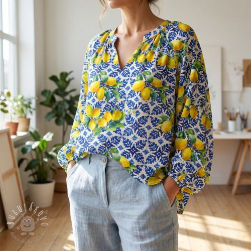 Bavlnená látka VISCOSE Flowers offwhite digital print