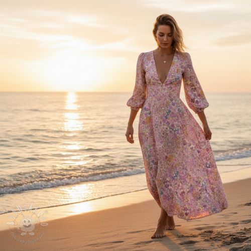 Bavlnená látka VOILE Small hayppy flowers digital print