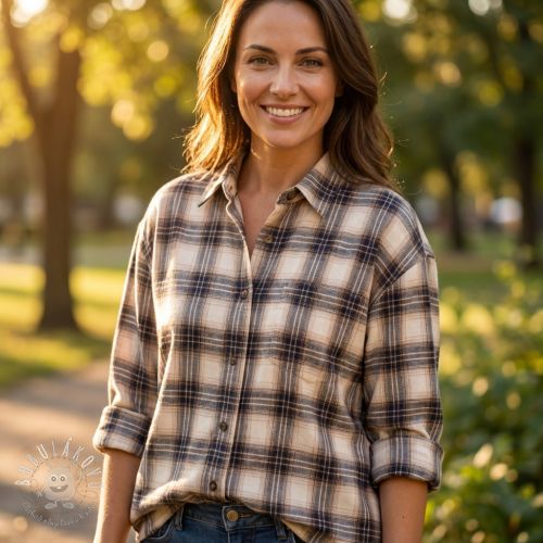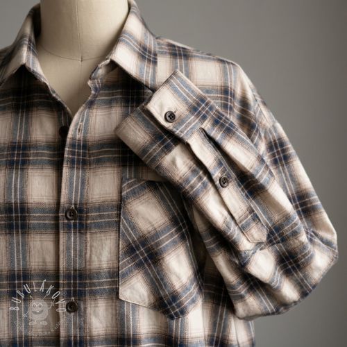 Bavlnená látka YARN DYED BRUSHED Check Tim beige