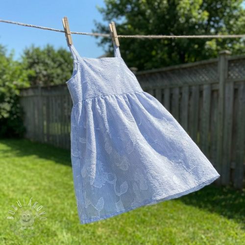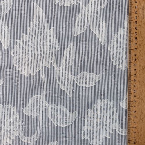 Bavlnená látka YARN DYED Stripes JACQUARD Flowers navy
