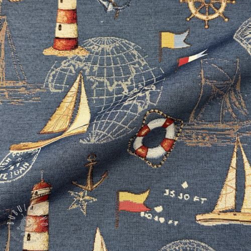 Dekoračná látka GOBELIN premium Coast Lighthouse Sea