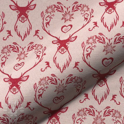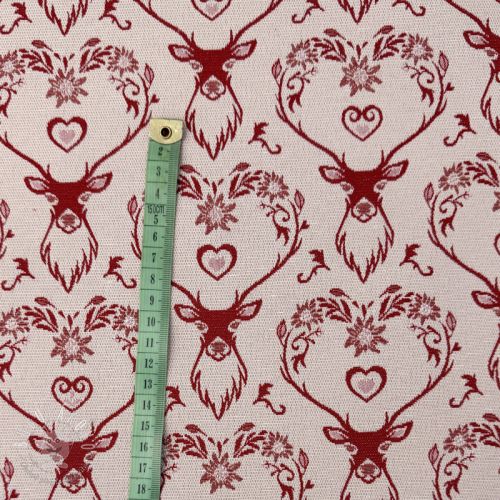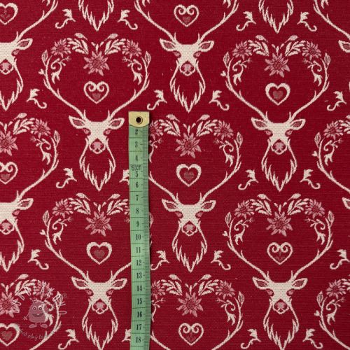 Dekoračná látka jacquard DOUBLE FACE Landhaus Deer Heart dark red