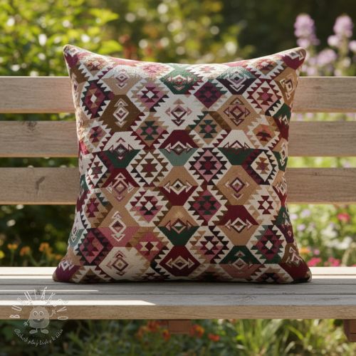 Dekoračná látka jacquard Kilim fuchsia vert
