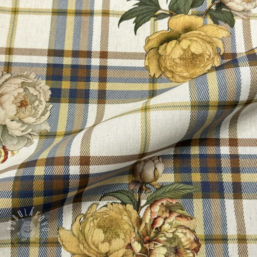 Dekoračná látka Linenlook Classic Peony Check digital print
