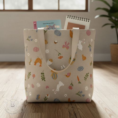 Dekoračná látka Linenlook premium Easter Doodle Icon
