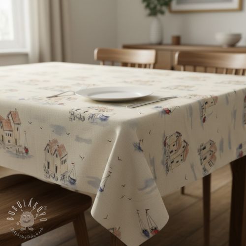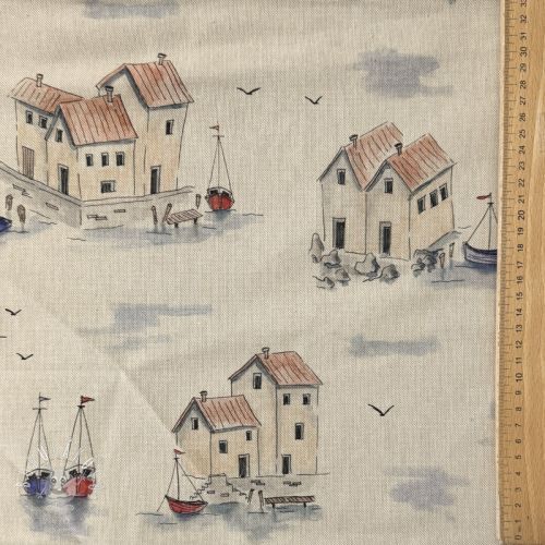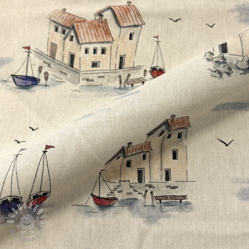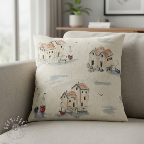 Dekoračná látka Linenlook Seaside House View digital print