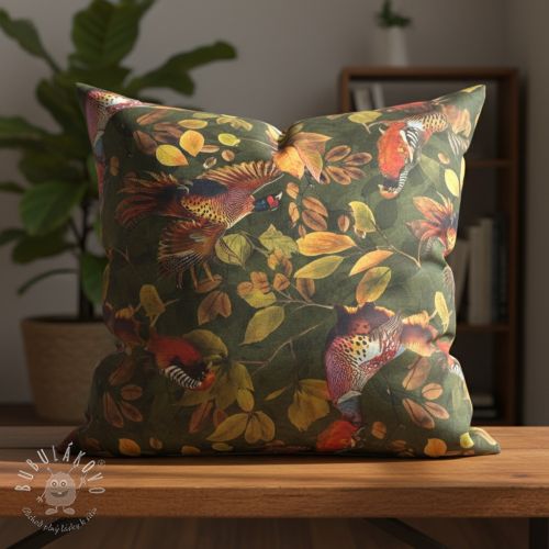 Dekoračná látka VELVET Pheasant Forest Leaf