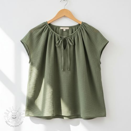 Dvojitá gázovina/mušelín moss green ORGANIC