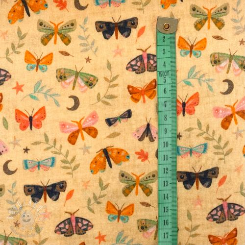 Dvojitá gázovina/mušelín Butterflies soft yellow digital print