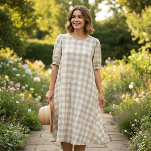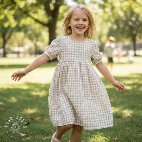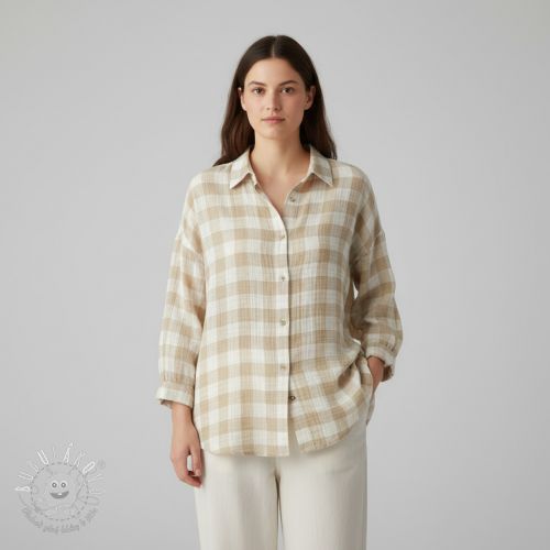 Dvojitá gázovina/mušelín Double sided CHECKS MINI beige